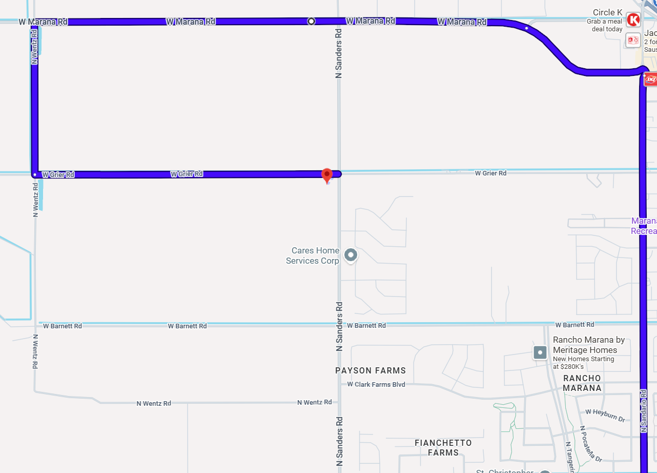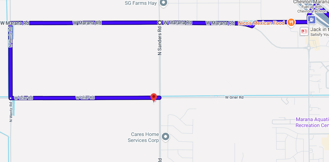 If you’re coming from I-10: Get off on Marana Rd and take Marana Rd west. Take a left on Wentz Rd and then take a left on Grier Rd. Please GO PAST THE ROAD CLOSED SIGN on Grier to get to the academy.